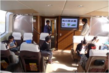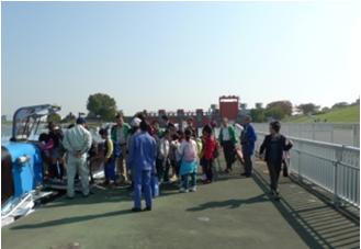 1)「南綾瀬小学校課外授業」(第3回) 場所 荒川 荒川知水資料館見学と巡視船で川の観察 平成22年11月9日 (火) 協力・指導 飾区環境課 荒川について説明を熱心に聴く生徒さん、 校長先生はじめ引率の先生方も勉強に なりましたとのお言葉。 これから乗船する「あらかわ丸」 説明をして下さっているいる状況 「スカイツリー」を船内より望む 11月予定